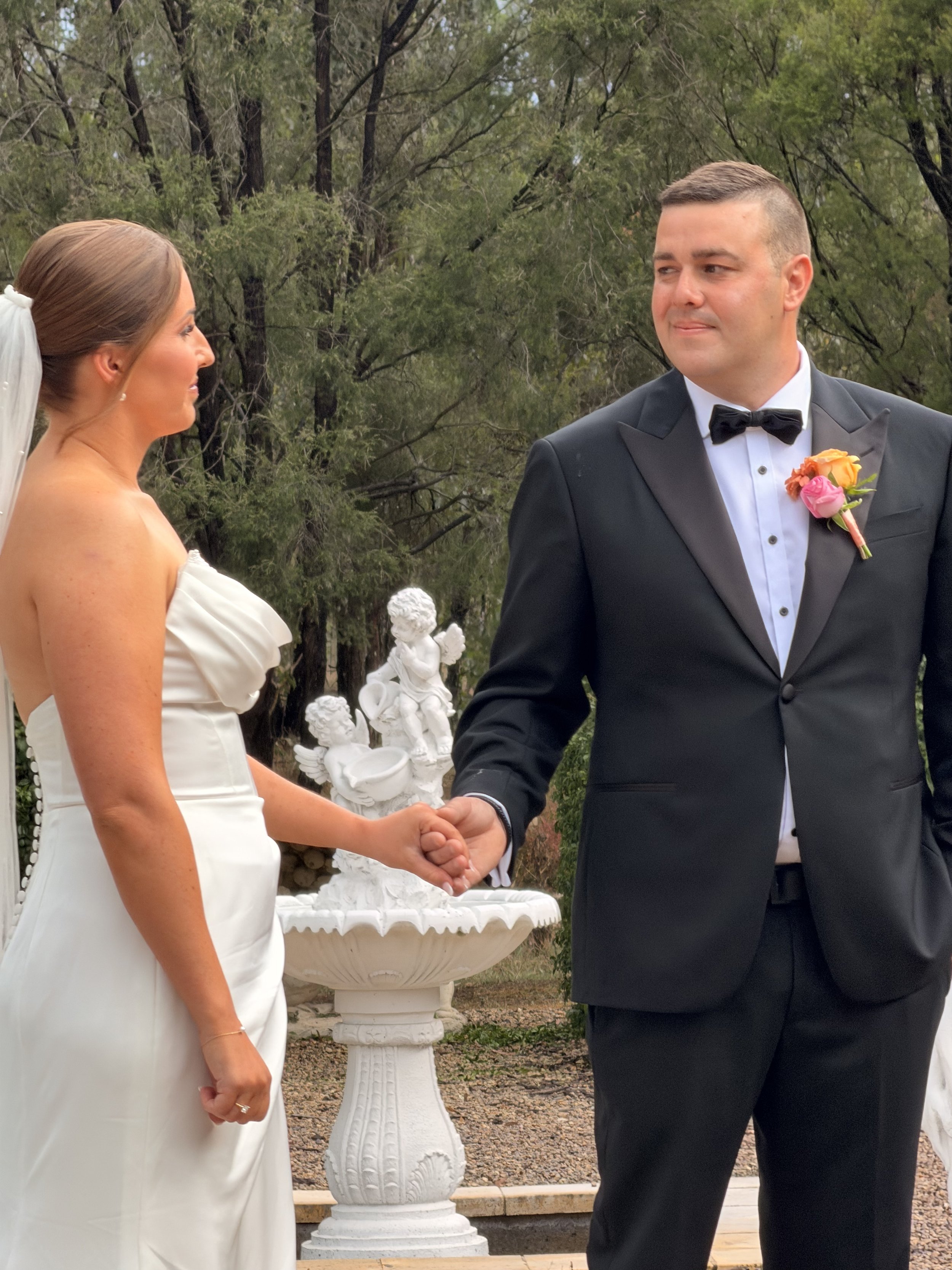 Just a two-hour drive from Sydney, this French Provincial haven sits in the heart of the Pokolbin vineyards, surrounded by 25 acres of breathtaking scenery in world-famous wine country. Lara and Tom exchanged vows in the charming rose garden before celebrating with family and friends as the sun dipped behind the Brokenback Mountains, casting golden light across the vines.